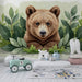 Papel pintado infantil | Oso feliz rodeado de follaje