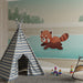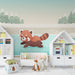 Lleva a tu hijo a un universo mágico con este papel pintado para bebé que representa a un adorable panda rojo divirtiéndose en un lago congelado. En un entorno invernal tranquilo, rodeado de montañas y abetos nevados, este panda aportará un toque de dulzura y aventura a la habitación de tu pequeño.