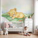 Redecora la habitación de tu hijo con este papel pintado para niños que representa a un adorable leopardo durmiendo cómodamente sobre una gran hoja. Este suave y reconfortante diseño invita a la dulzura y la serenidad.