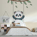 Pilves kiigel mängiv tige panda on ümbritsetud õrnadest lehtedest, lisades võluvale maailmale loodusliku puudutuse. Beeži ja rohelise pehmed toonid taustal loovad rahustava tausta, mis soodustab pisikeste magamist ja loovust.