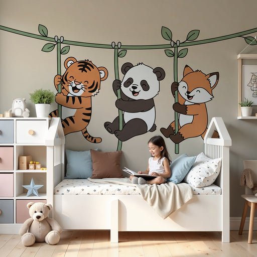 KidsWallTeisaldage teie beebi tuba maagia ja õrnuse paigaks selle lõbusa beebi tapeediga, kus on armsad loomad, kes ripuvad roheliste okste küljes. Väike v...
