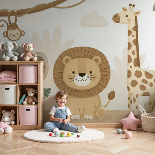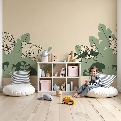 KidsWallMuutke oma lapse tuba selle lummava tapeediga, mis kujutab uudishimulikku mängurite rühma looduses. Õrnalt kujutatud, seisavad need võluvad loomad ...