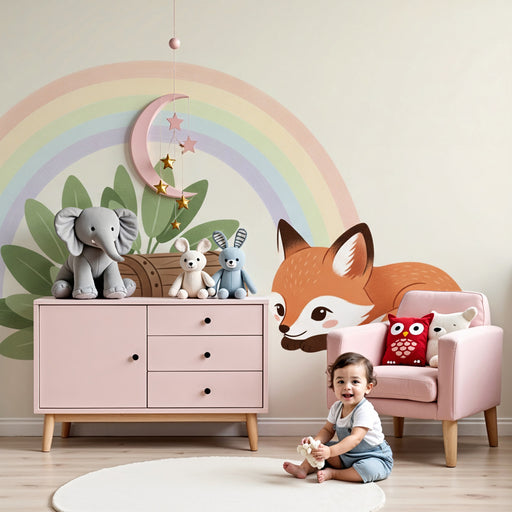 KidsWallMuutke oma beebi tuba maagiliseks ruumiks selle beebi tapeediga, kus armas rebane mängib rahulikult salapärase kirstu kõrval. Pastelse vikerkaare t...