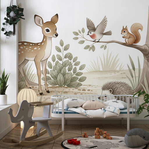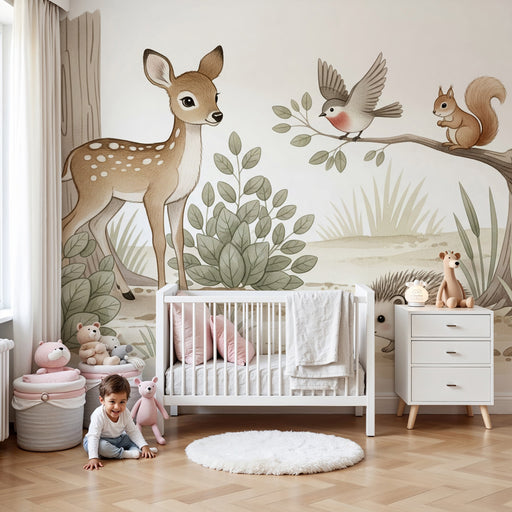 KidsWallKujunda oma lapse tuba selle armsa metsavaatega beebi tapeediga. Õrnade laikudega noor põder seisab rahulikult roheluses, koos elava oravaga ja uud...