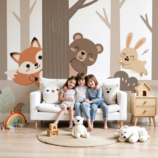 KidsWallUuendage oma lapse loomulikku tuba selle lastele mõeldud tapeediga, kus on armsad loomad rahulikus metsas. Tulihänd, naeratav karu ja rõõmus jänes ...