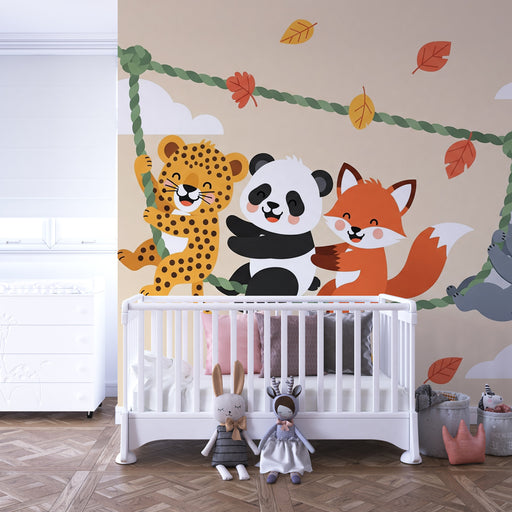 Kuva kõik üksikasjadKinderzimmer Tapete | Fröhliche Tiere auf einer Schaukel