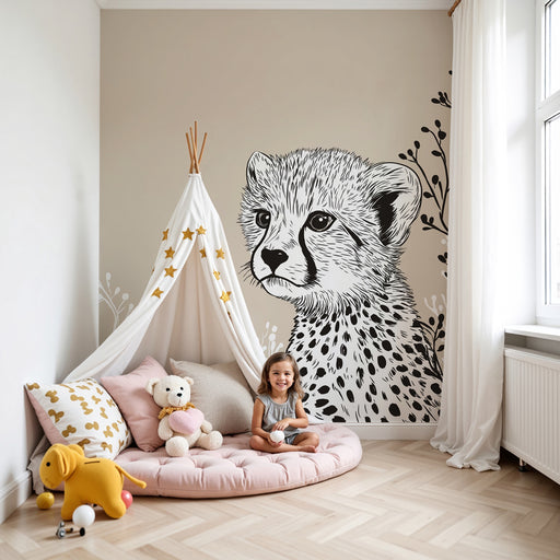 KidsWallLisagez une touche de douceur et de nature à la chambre de votre enfant avec ce papier peint pour enfants représentant un adorable bébé guépard. Av...