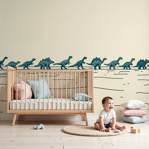 KidsWallTeisaldage oma lapse tuba tõeliseks eelajalooliseks seikluseks selle lastele mõeldud tapeediga, mis kujutab lõbusat dinosauruste paraadi. Alates ma...