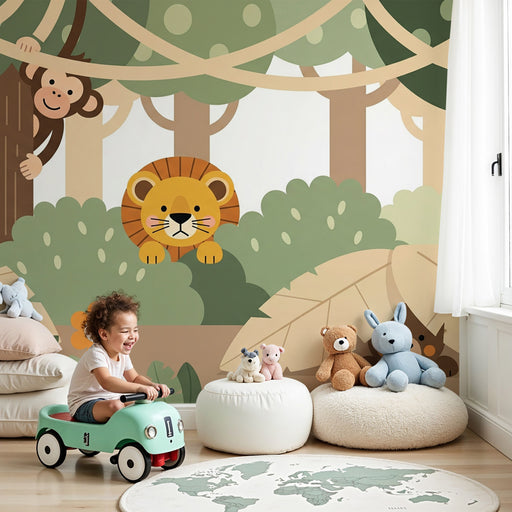 Kuva kõik üksikasjadKids room wallpaper | Jungle animals playing hide and seek