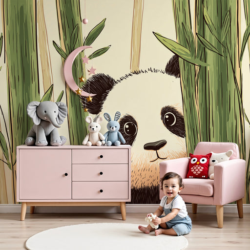 KidsWallPakkuge oma lapsele looduse rännakut selle armsa lastetapetiga, mis kujutab uudishimulikku pandat bambusevarte vahel peites. See lõbus ja võluv dis...