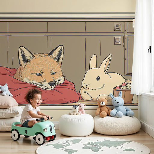 Kuva kõik üksikasjadKids room wallpaper | Kaisukaru rebane ja uudishimulik jänes