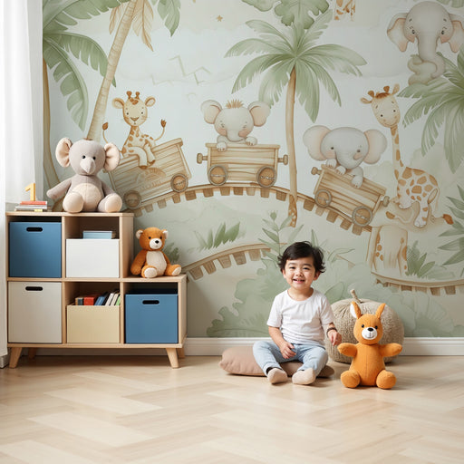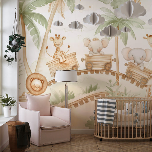 Laste toa tapeet | Võluv safari rõõmsate loomade ja eksootiliste palmidega