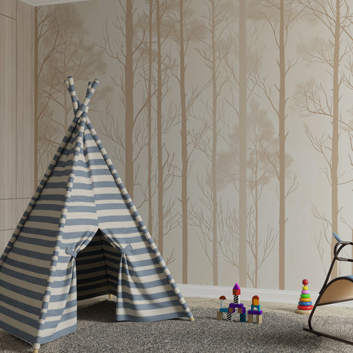 Laste toa tapeet | Minimalistlik mets sihvakate puude ja pehmete toonidega