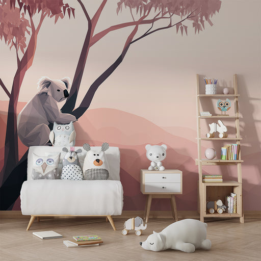 Kuva kõik üksikasjadKids room wallpaper | Arms koala on colorful geometric background