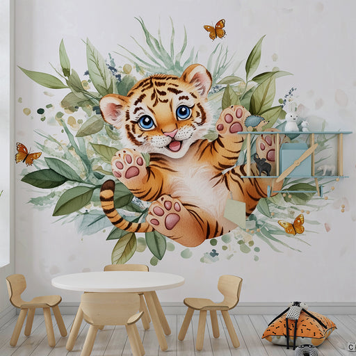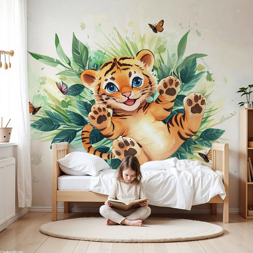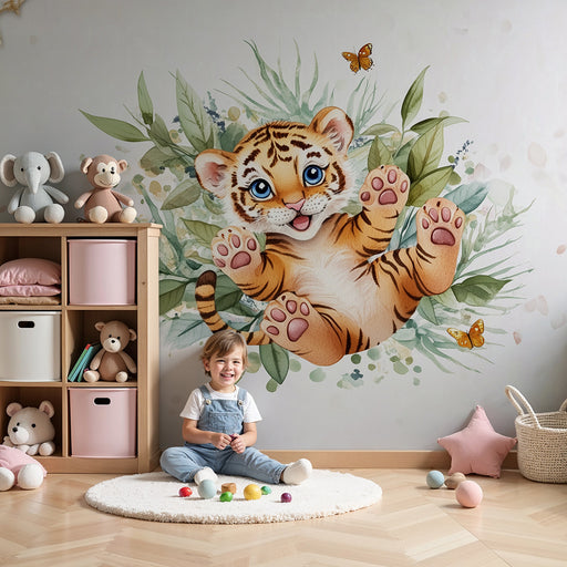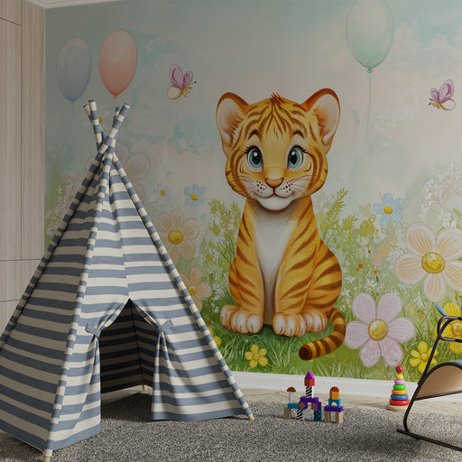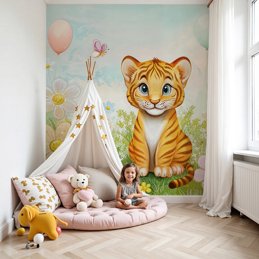 Iga rõõmus tiiger tundub olevat valmis lendama võlumaailma, ergutades laste loovust. See lastetoa tapeet on ideaalne lõbusa ja lõõgastava keskkonna loomiseks, mis soodustab kõige ulmelisemaid unistusi.
