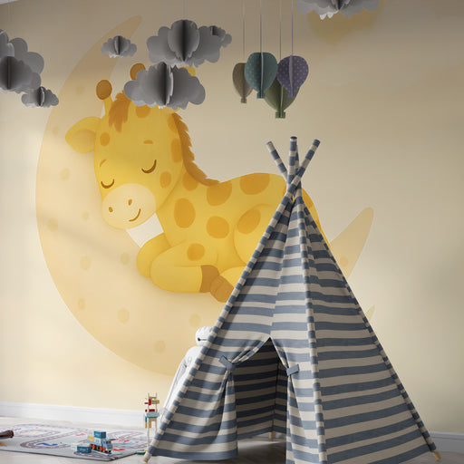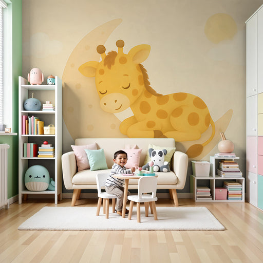 Kids room wallpaper with patterns | Happy giraffes in the middle of the trees