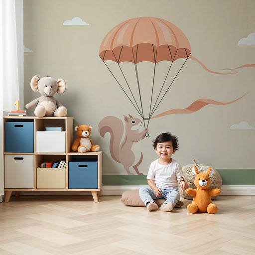 Kuva kõik üksikasjadKids room wallpaper | Langevarjuga orav pilvedes
