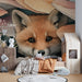 Kinderzimmer Tapete | Neugieriger Fuchs unter bunten Pilzen