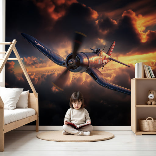 Liikuge põnevale seiklusse selle lastetapetiga, kus võluv pesukaru piloot lendab üle maaliliste mägede. Tema väike kollane lennuk hõljub läbi pilve...