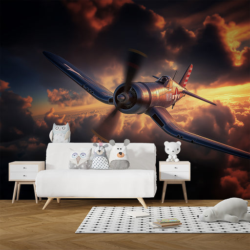 Kids room wallpaper | Rabbit pilot flying in the clouds
