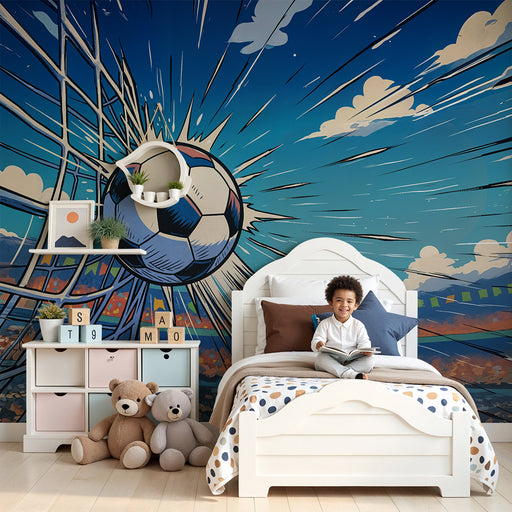 Tooge väljakutse põnevus oma siseruumidesse meie jalgpalli seinapaberiga. Püüdes hetke, mil pall tabab võrku, lisab see disain igasse ruumi liikumi...