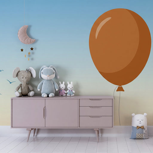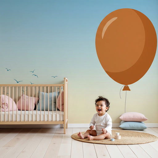 Lisagez une touche de magie et de légèreté à la chambre de votre bébé avec ce papier peint pour bébé représentant des ballons colorés s'élevant dan...