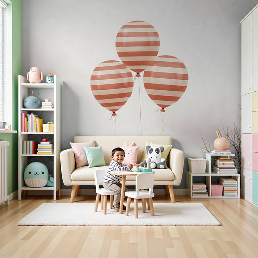 Lisage ja rõõmu lisamiseks oma beebi toale lisage see beebi tapeet, mis kujutab triibulisi õhupalle. Need õrnades toonides õhupallid, mis ripuvad p...