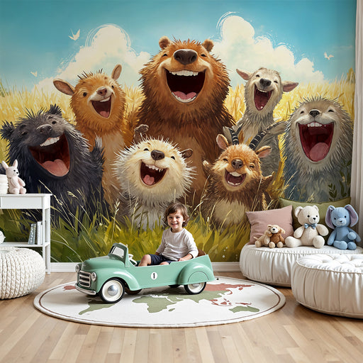 Kinderzimmer Tapete | Fröhlicher Zug mit lustigen Tieren