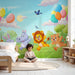 Tooge oma lapse toa rõõmsameelne ja mänguline õhkkond meie loomade seinapaberiga. See elav disain kujutab rõõmsaid loomi, kes kannavad värvilisi õhupalle, liiguvad rohelises maastikus päikselisel taevas.