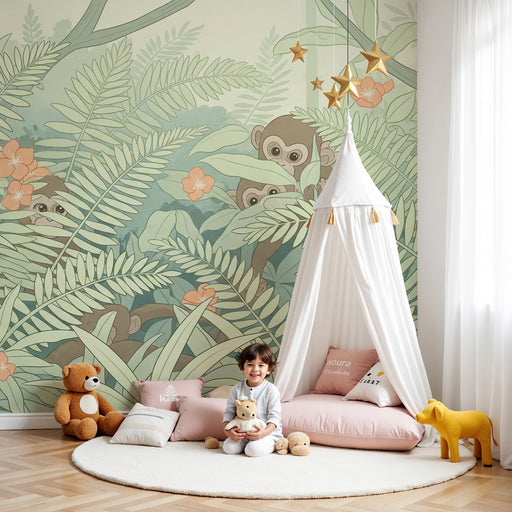 KidsWallTeisaldage oma lapse tuba tõelise troopilise elupaigaga selle armsa sabaga ahvi kujutisega lastele mõeldud tapeediga. Selle armsa väikese vaatlejas...