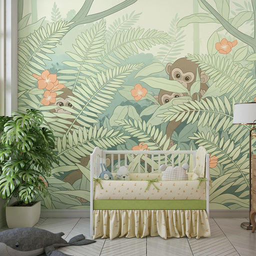 Kuva kõik üksikasjadKids room wallpaper | Uudishimulikud ahvid taimestikus