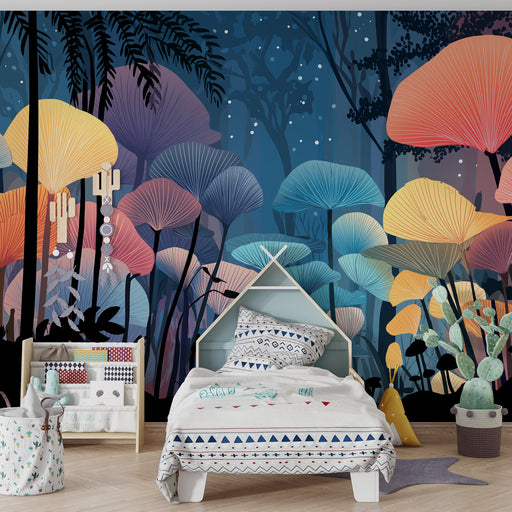 Kuva kõik üksikasjadKids room wallpaper | Magical forest with colorful mushrooms