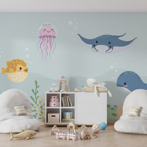 KidsWallSukelduge maagilisse ookeanide maailma selle lastetoa tapeediga, mis tähistab merepõhja ilu. Lõbusad olendid nagu naeratav kala ja rõõmus meduus uj...