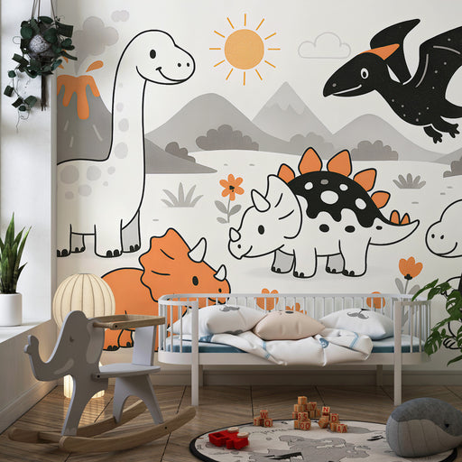 Kuva kõik üksikasjadKids room wallpaper | Õnnelik dinosauruse seinapilt ja vulkaan