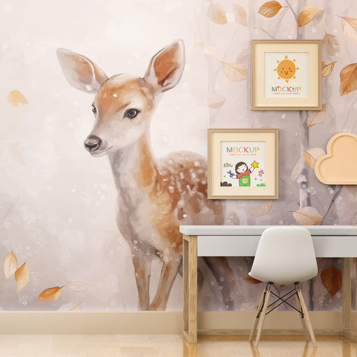 Kuva kõik üksikasjadKids room wallpaper | Armsome faon keset pehmea maastikul