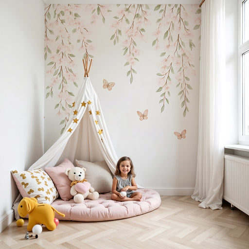 Kuva kõik üksikasjadKids room wallpaper | Õrnad pastelsed lilled ja liblikad