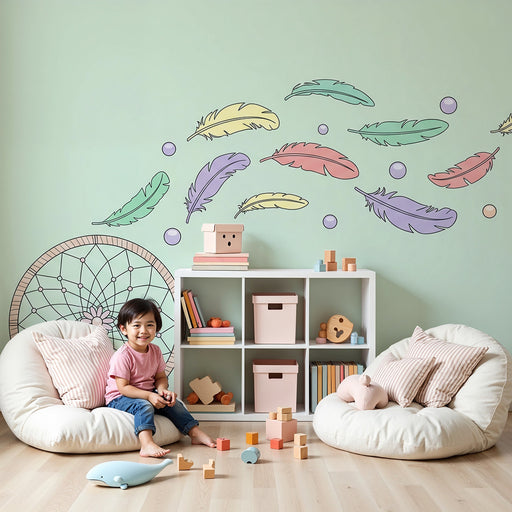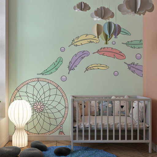 Kuva kõik üksikasjadNursery room wallpaper | Värvikas unenäopüüdja õrnade sulgedega