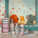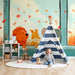 Säravad värvid ja rahustav taust loovad täiusliku keskkonna teie lapse kujutlusvõime ja loovuse stimuleerimiseks. Elavate triipudega tiiger ja pehmete oranžide toonidega kassipoeg lisavad elurõõmsat dünaamikat interjöörile, püsides samal ajal harmoonias tausta looduslike elementidega.