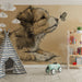 Kids room wallpaper | A curious puppy and a butterfly in a soft setting