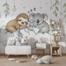 Kinderzimmer Tapete | Drei schlafende Tiere auf einer Wolke