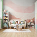 Lastenhuoneen tapetti | Lempeitä vesiväreillä maalattuja aaltoja vaaleanpunaisissa ja beigeissä sävyissä