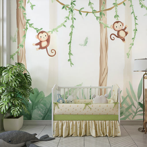 Näytä kaikki tiedotLastenhuoneen tapetti | Pieni ilkikurinen apina viidakossa