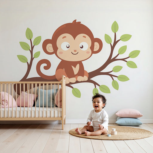 KidsWallTutustu lastenhuoneen tapettiin, jossa on iloinen apina oksalla. Täydellinen luomaan lämmin ja leikkisä ympäristö vauvasi huoneeseen, tämä suunnitt...