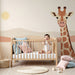 Beigen ja vaaleanpunaisen pastellisävyt luovat rauhallisen tunnelman, joka on täydellinen rauhoittamaan pientäsi lepohetkinä. Yksinkertaiset ja tyylikkäät graafiset elementit tuovat modernin kosketuksen, mutta ovat silti lempeitä pienten silmille. Tämä sisustus kutsuu seikkailuihin ja löytöretkiin, stimuloiden lasten mielikuvitusta.