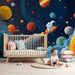Lastenhuoneen tapetti | Astronautti ja värikkäät planeetat