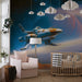 Lastenhuoneen tapetti | Avaruusseikkailu ja renkailla varustettu planeetta