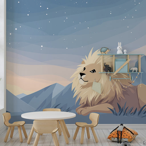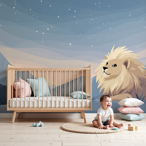 Näytä kaikki tiedotLastenhuoneen tapetti | Rauhallinen leijonanpentu tähtien alla