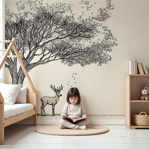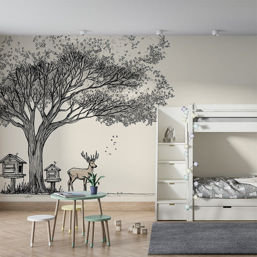 Näytä kaikki tiedotLastenhuoneen tapetti | Hirvi suuren puun alla