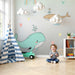 Muuta vauvasi huone lumoavaksi merimaailmaksi tällä lastenhuoneen tapetilla, jossa on suloisia valaita ja kirkkaita sateenkaaria. Jokainen valas, pehmeät sävyt ja iloiset ilmeet tuovat taikaa ja lempeyttä tilaan.