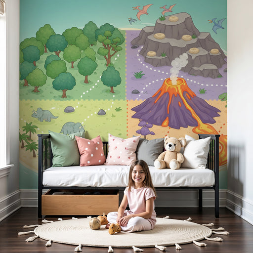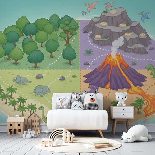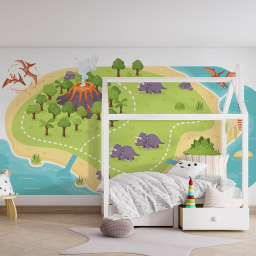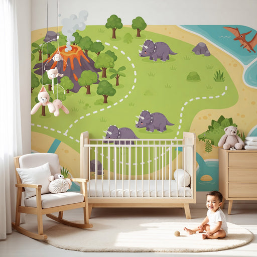 Näytä kaikki tiedotLastenhuoneen tapetti | Dinosaurusten saari ja tulivuori